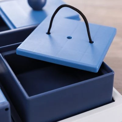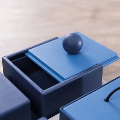 Juego para perros formado por 4 cajas diferentes que guardan golosinas en su interior. Un entretenimiento para perros que ya conocen otros juegos de inteligencia.